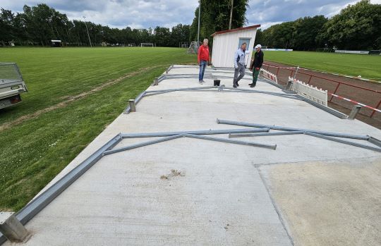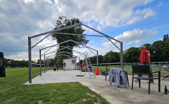 Seit mehreren Wochen bauen Vereinsmitglieder in Eigenregie an diesem notwendigen Unterstand. Bis zu endgültigen Fertigstellung dauert es aber noch einige Zeit, da diese in ehrenamtlicher freiwilliger Freizeit nach Feierabend Stück für Stück aufgebaut wird.