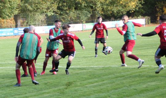 Die Gäste blieben nicht ungefährlich. Einen Kopfball von Liam Kolbe musste Sinan Yilmaz von der Linie kratzen, um einen Rückstand zu verhindern (19.). Ruthes Topscorer Aiman Hoballah setzte sich mehrmals gegen die vielbeinige VfR-Abwehr durch. In der 20. Minute sprang ihm der Ball allein vorm Torwart zu weit vom Fuß. Das hätte der Führungstreffer sein müssen. Hoballah bekam des Öfteren die körperliche Härte der Gäste zu spüren. In der 30. Minute wurde er unsanft an der Strafraumgrenze gestoppt. Den anschließenden aussichtsreichen Freistoß ließ der FC zu unpräzise verstreichen.